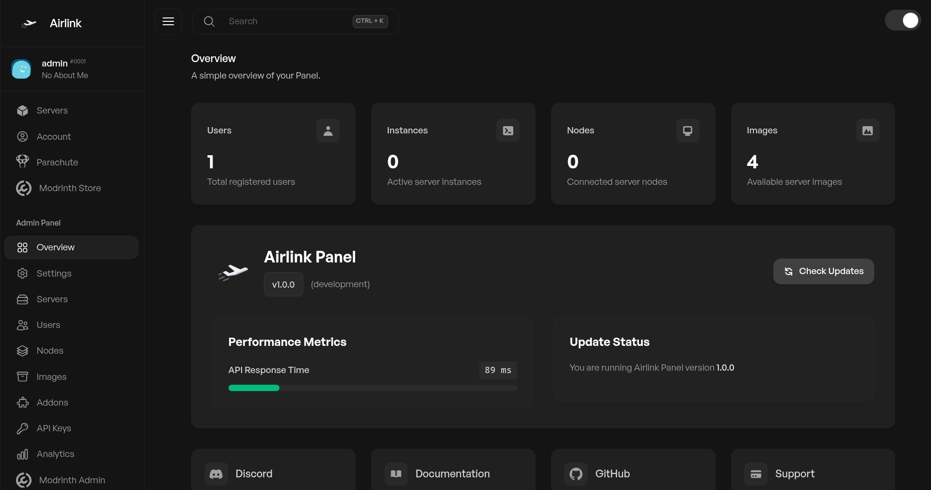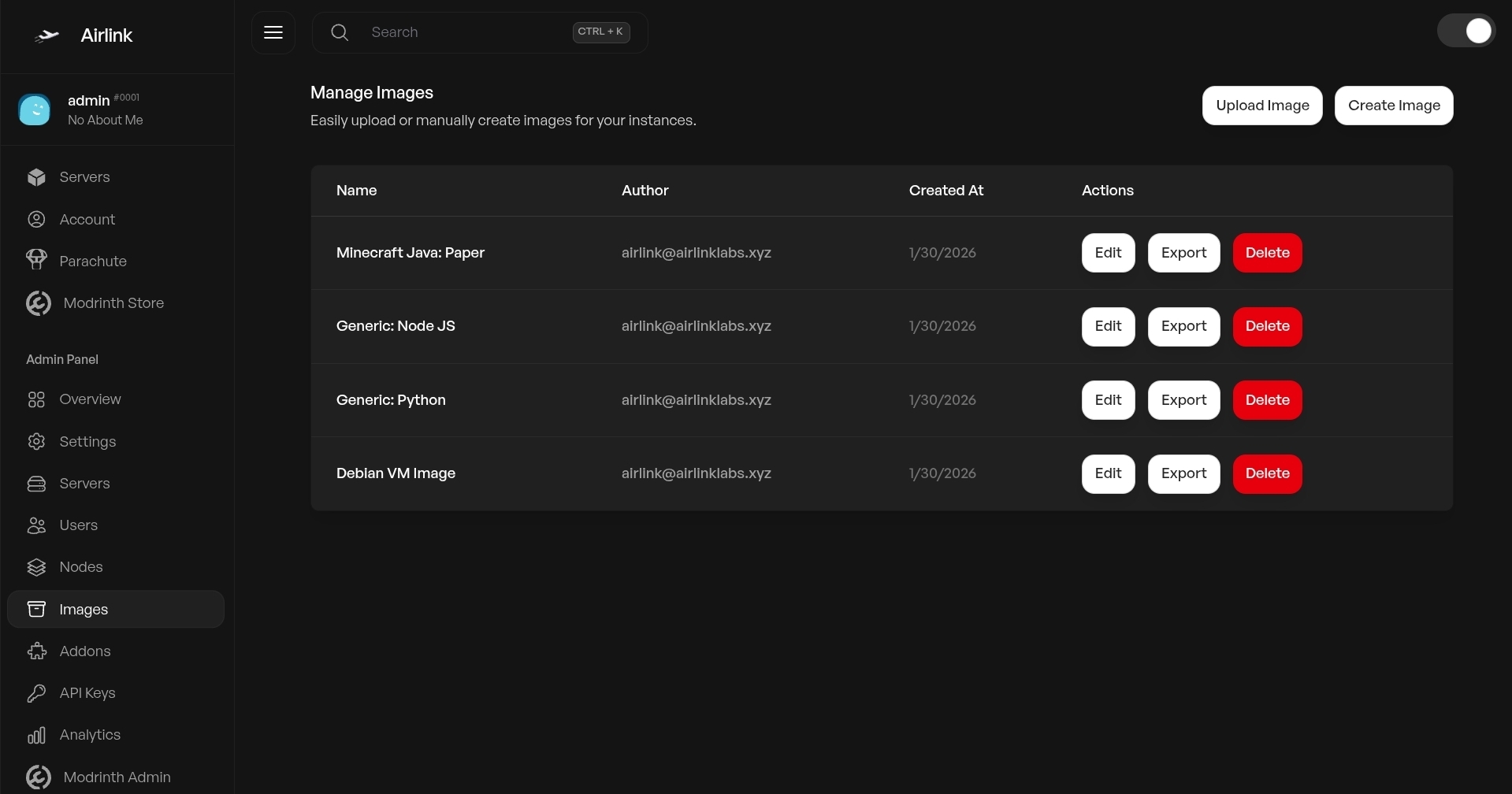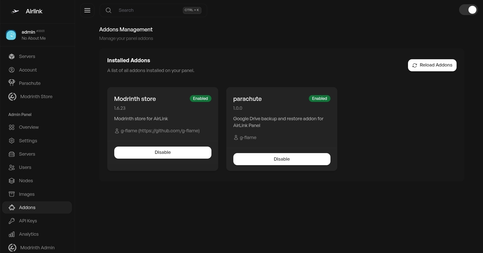 AirLink is an open-source panel built with TypeScript — handles multiple game servers, user permissions, and extends through addons without touching core code.